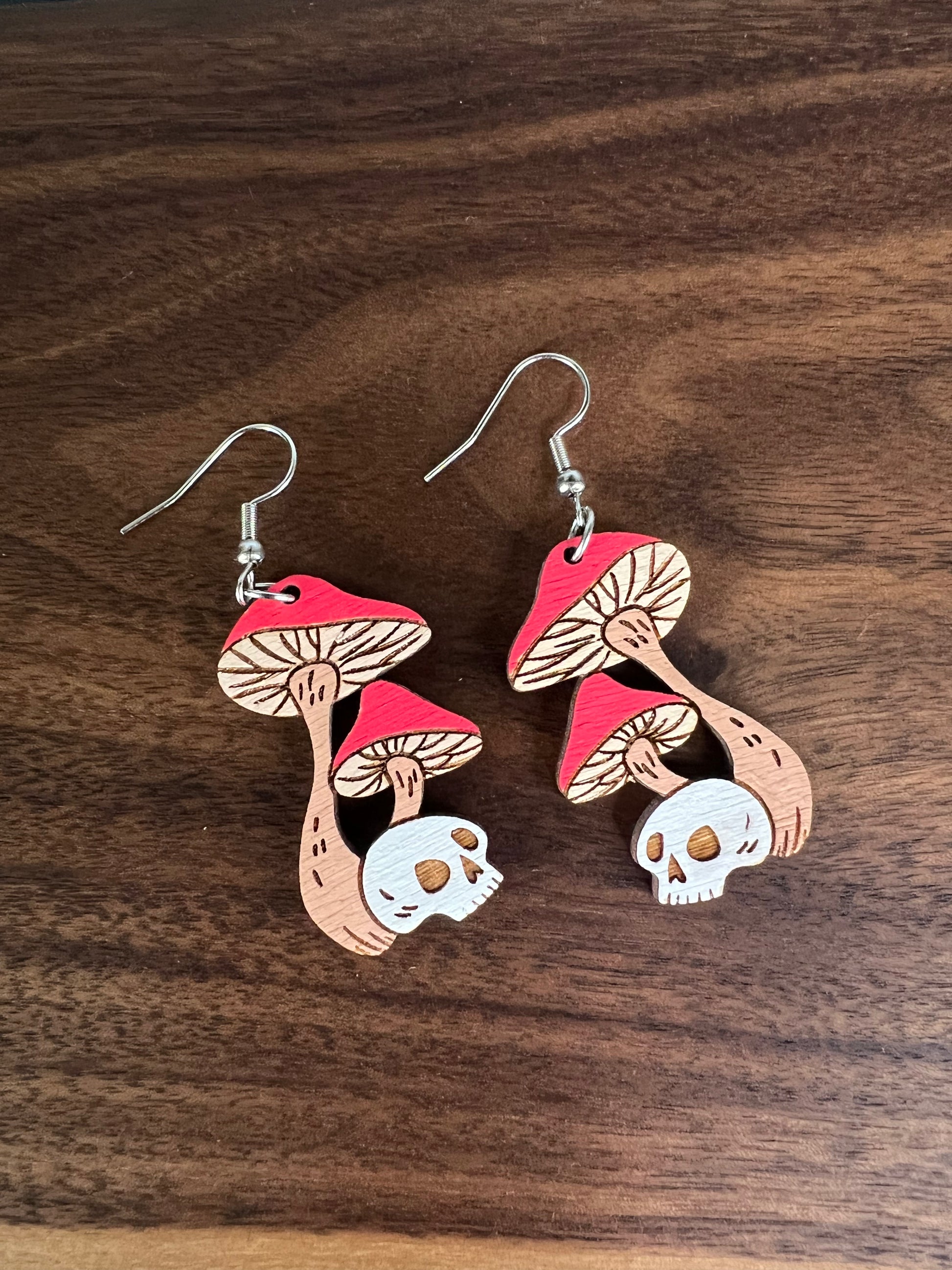 Perfect for any mushroom lover, these mushroom skull earrings make great gifts and they are super light weight making them very comfortable to wear.Â